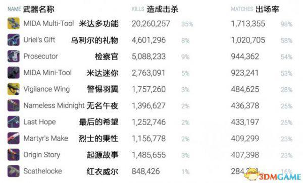 命运2PVP武器排名 命运2PVP武器出场率一览
