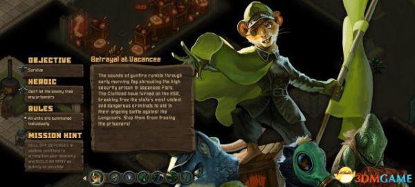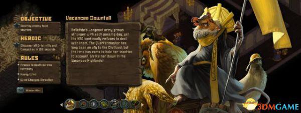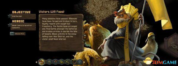 技巧:首先,该游戏可以使用那种自爆式的炸弹小兵,前期数量充足,利用他们迅速探索主营地周围的篝火据点。记得第一时间发现和拆掉敌人的兵营。训练至少5只以上的AFB榴弹中队,用他们克制敌人的进攻。另外志愿者鸽子也要至少出6只以上。玩家需要不断的点篝火,猎杀敌人才会赚取更多的食物发展自爆兵。中后期要至少拥有20只炸弹小兵,才可以在抵挡最后一波猛攻。该关卡取得英雄主义的条件比较容易,只要点亮14处篝火,无论它们在游戏过程中是否被敌人占领后熄灭,都算取得成功。