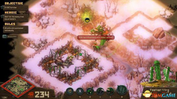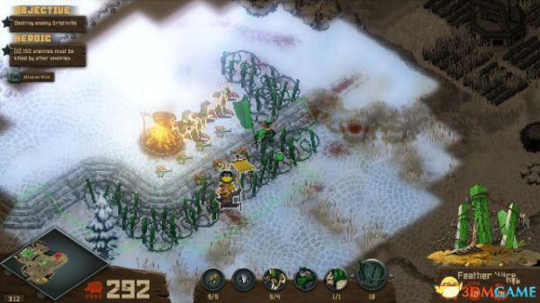 技巧:该局在刚开始会出现卡钱的现象,需要果断卖掉3个位置不佳的炮台(或者更多)来换取前期发展的食物。该关卡取得英雄主义通关难度较大,由于游戏的条件只有3分半钟,而且前期卡钱,中期受牵制,后期时间又不够用,因此玩家需要前期卖掉几乎所有的炮台来迅速发展才会有几率压制敌人,赢取英雄主义的通关。