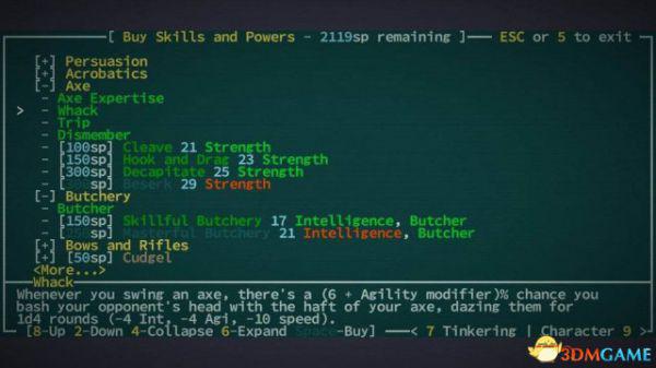 近战武器分四种:短刃(Short Blades)、棍棒(Cudgel)、斧头(Axe)、长刃(Long Blades),与它们对应的武器技能差异显著,特色鲜明