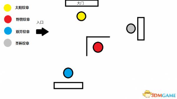 任务目标就是根据太阳纹章的门口地板上的纹章提示,前往相应的纹章位置。然后清掉该位置的小怪,会有个黄血精英出现,击杀后获得纹章旗子,运回门口太阳纹章处,运3次大门便会打开。