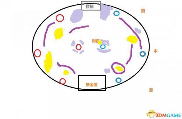 中心点的白色圈,吃buff和集火点都在这。