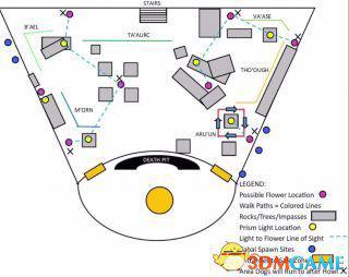 3.获得BUFF后,遛狗组移动转移向日葵跳跳乐队友在扫完花后不要移动,转身回头看如图所示的cabal,spawn,sites那里会刷出胖子,记得第一时间击杀(否则胖子跳下,会对遛狗组造成一定的干扰),然后报花点,继续。