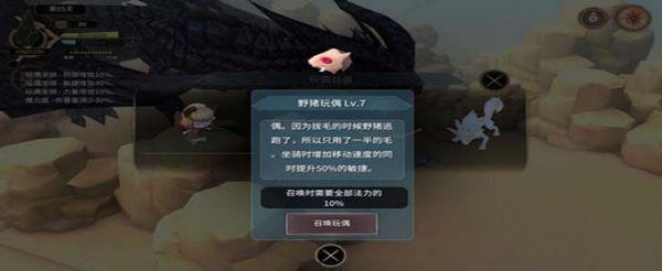 野猪玩偶介绍:奶奶利用野猪的毛制作的玩偶。因为拔毛的时候野猪逃跑了,所以只用了一半的毛。坐骑时增加移动速度的同时提升50%的敏捷。