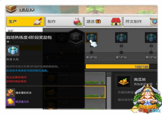 栽培熟练度阶段是一种积累性的等级体系,目前游戏中有最高13段的栽培熟练度阶段,提升熟练度阶段可以解锁更高级的作物田地,也就可以收获价值更高的产物,同时,每升至一个更高阶段还会获得特殊的礼包奖励,包含赋予角色增益状态的料理、精灵魔力石、房屋摆设、专属时装等丰厚奖励内容。