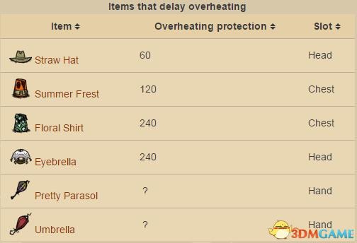 此类物品仅能【延缓温度的继续升高】,而不能【主动】降低角色的温度。