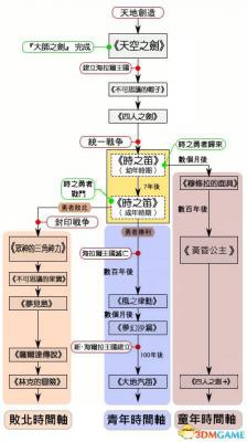 新公布的历史时间轴虽然和25周年的《海拉尔史记》大抵相同,都是原始时间轴之后到了<时之笛>分裂成三条不同走向的未来