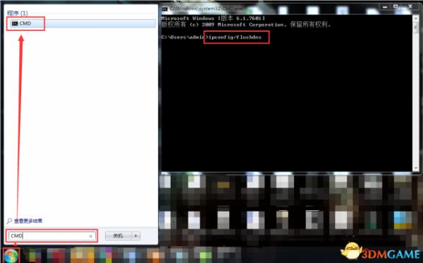 · Win7用户点击开始按钮,搜索CMD,并右键以管理员身份运行,然后输入netsh winsock reset,回车。