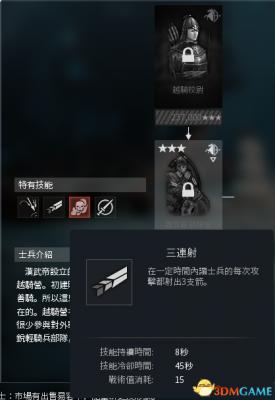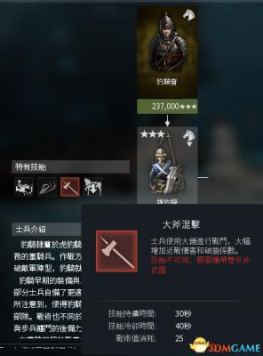 第二是魏豹骑,跟随冲撞玩过青州精骑的人应该都知道有多厉害,去掉了刀盾技能,增加了一个大斧技能,在马上的话应该效果不大。但是下马后的伤害会比刀盾或连斩更有效果。个人认为豹骑当之无愧的强势兵种NO.1。