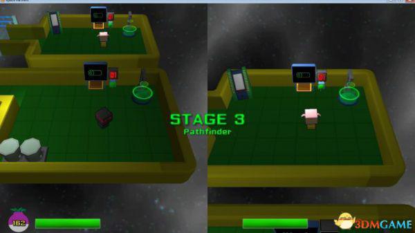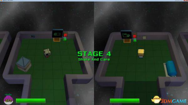 两位玩家分别行动,通过平台和限时平台到达房间分别使用手套将3个猪放到机关格上,双方都打开后通关
