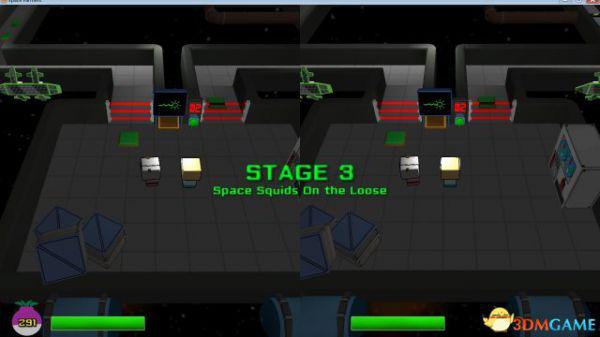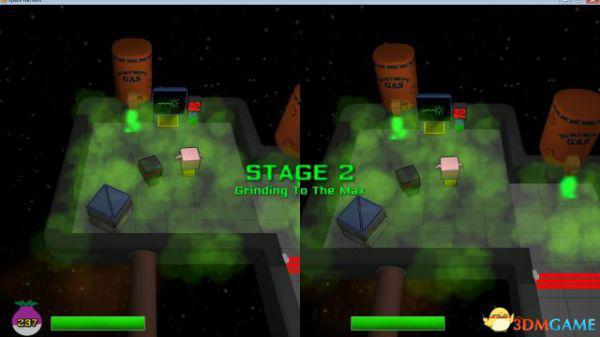 两位玩家先用炸弹炸掉所有的电线塔,然后去下面拿手套搬猪,通过之后拿干草叉(不拿也没关系)通过绕圈躲障碍物后方躲避激光到达终点