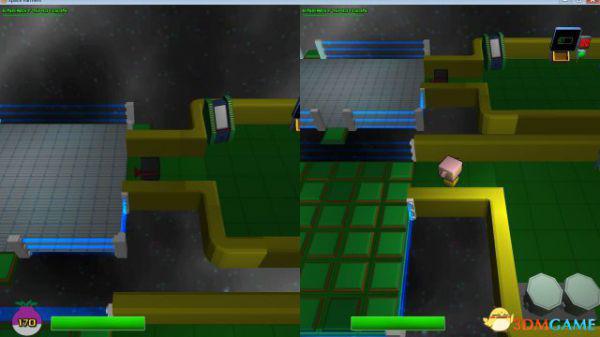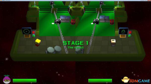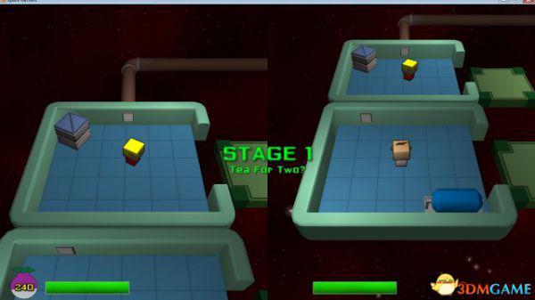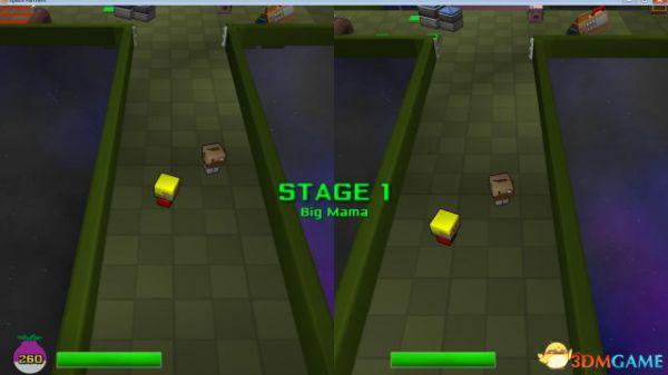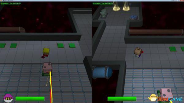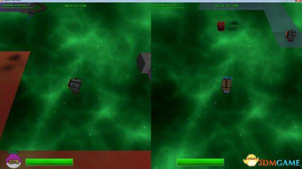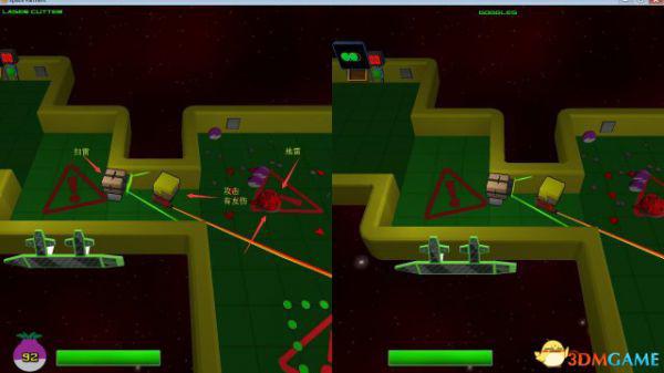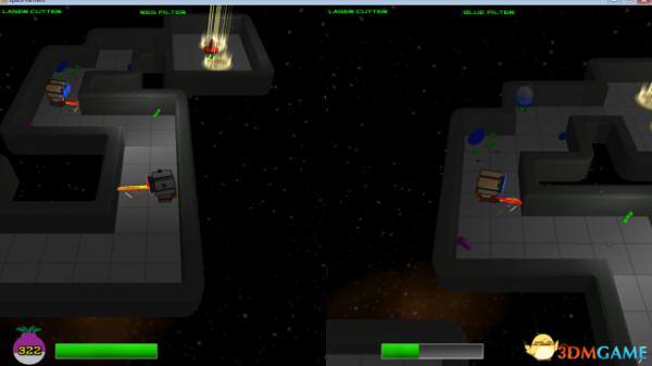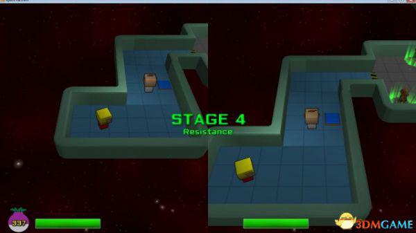 玩家拿激光(注意友伤)互踩格子前进,最后部分分别有红蓝两种怪物,每个玩家只能看到一种颜色,所以最好关注两个屏幕,不然GG