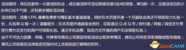 活动期间:每位玩家有一次激活的机会,成功激活即可获得英雄武器5选4的资格。单Q限一次。