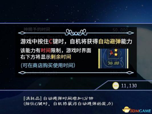 商店中包含神秘的自动避弹道具,按住C键时,自机将获得自动避弹能力。