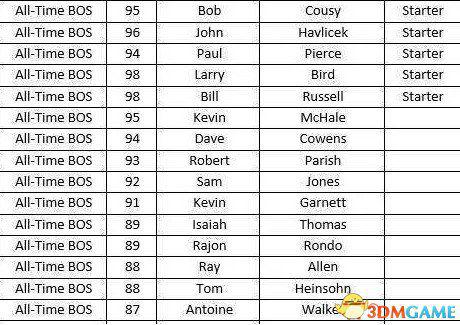 他们相比波士顿拥有更多的中级球员,但是,我的天,他们拥有11位90+的球员,而且,首发阵容均超过了96。同时,魔术师的99分相对于拉里伯德的98分将会是波士顿和湖人最大的不同。相信凯尔特人的粉丝们也会赞同的。