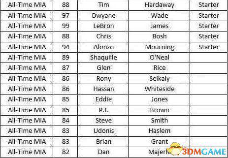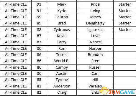 詹姆斯是游戏中前四的球员,12名85+的球员让骑士拥有强大的阵容。
