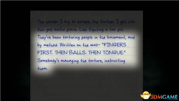 这个场景中的彩蛋则是回应了游戏一代中,精神病医院折磨人的方法:首先是指甲、然后是眼球、然后是躯干。