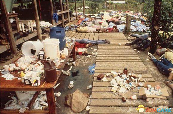 最后这个在游戏将要结束的场景,则是回应了游戏参考的琼斯镇惨案当年的惨状。