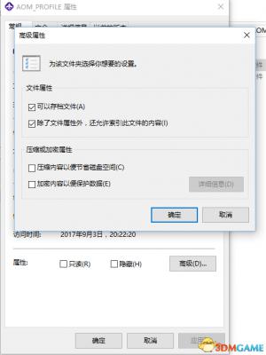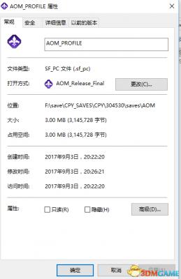 将cpy.ini中存档位置路径修改到任意位置,打开游戏,玩一下,产生存档文件,设定位置出现存档而后修改两个存档文件,把打开方式设置为AOM_Release_Final,顺便查看两个文件的高级设置,如图设置,之后游戏便能顺利读档,以上方法是我自己琢磨的,不知道诸位朋友能不能用这个方法解决。