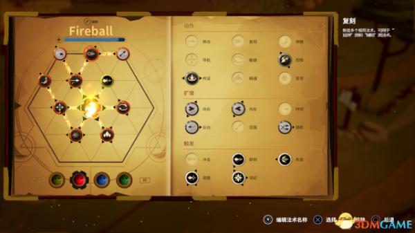 [复刻] 符文可将发射的火球变为三个,[范围] 符文如果直接链接到中心,将是把火球变大;