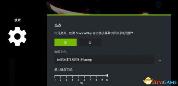 2.设置——亮点——打开亮点,使用ShadowPlay自动捕获屏幕快照并录制视频——是