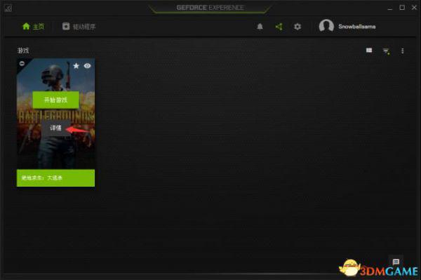 4.进入GeForce Experience主页,打开绝地求生:大逃杀——详情