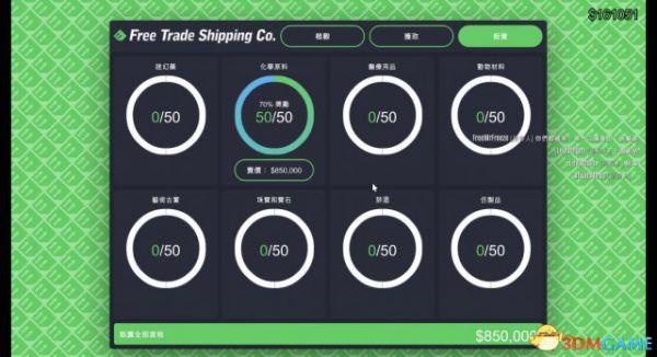 我将化学原料堆到了50箱,可以看到,买家给了70%的额外奖励,也就是说卖出去的利润是85万。