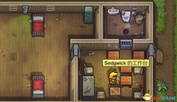 准备工作:这一次是前所未有的四人牢房,而且里间还装备了摄像头,一旦发现玩家在牢房里做什么偷鸡摸狗的事儿(例如翻别人的工作台),警察就会立刻前来进行驱赶。当然我们可以一股脑将工作台都搬进右侧小房间,这样就可以畅通无阻的搜索,同时提高搜索效率(摄像头完全形同虚设嘛...)。