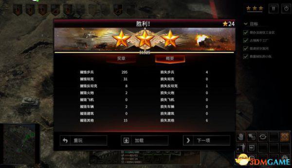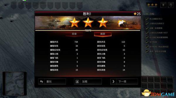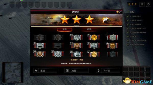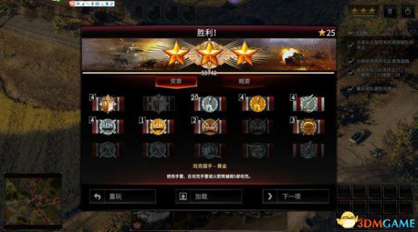 直接突袭到桥边,注意,士兵分布在坦克两侧,攻击模式选择右键,而不是A,坦克可以移动射击,之后步兵清理下方阵地外围的敌人。然后一个坦克带1-2个小兵突击,之后修桥,用手榴弹炸了岸防炮,之后突破战壕,再炸了岸防炮一个,之后就可以突击到敌人后方,配合手榴弹,敌人轻型坦克根本无压力,各种抢大炮中间村庄打不打随意,如果分数不够了,就是不够三星,可以把中间村庄打了,有一个补给站可以补给弹药,记住挑战模式一定要打到三星,否则算挑战失败。