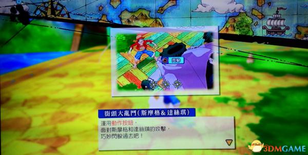 3.继续重复上述步骤,第三批【海军乱入】,干掉之后,斯莫卡和达斯琪乱入,按圆圈OTE,有三次机会,三次都失败被抓的话,图鉴里不会出现这两人(如果手残失败了也不要灰心,继续刷任务兜城镇,之后乱入再刷到第二次这两人还会乱入),允许有失误,不能太多,逃脱成功后取得这两人图鉴。