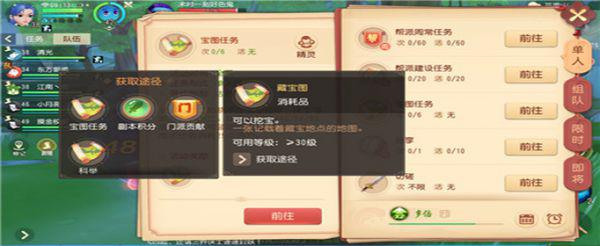3、除了这两种方法之外,门派贡献、副本积分、科举等方法都可以获取藏宝图,藏宝图在游戏中是不可以互相交易、给予或者出售的,是一个绑定的道具,玩家们在获取这个藏宝图之后一定要第一时间使用哦。
