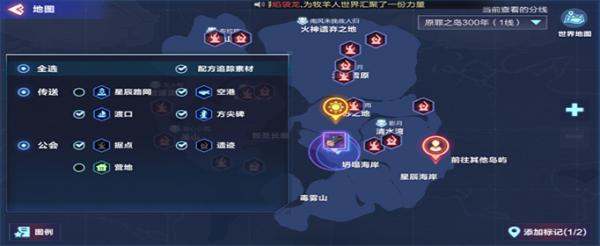 3、找到方尖碑之后只要达到相应的要求即可通过方尖碑进入星历300年的原罪之岛,达到300年的原罪之岛之后打开地图查看清水湾的位置即可。