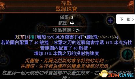 此BD的核心技能是暴击CI冰霜之刃,60%物理转冰伤害,配合天赋40%,可以100%物理转冰伤害。(输出时可以冻住T15以下的BOSS及小怪,清图是非常安全的,不会出现猝死的情况)