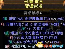 8,戒指,宝钻底子就行,有钱的可以用蛋白石!(属性要求,点伤》元素伤害,护盾百分别,最完美的是物理点伤,武器元素伤害,护盾百分比,抗性,适当补点力量)