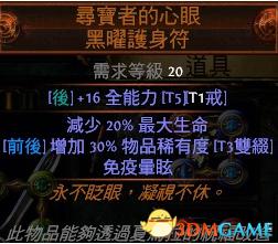 7,项链,寻宝者之心 免晕链(台服目前10C左右,我这个5C买的)或者均衡之符,另外带护盾百分比19以上的黄项链也是可以的