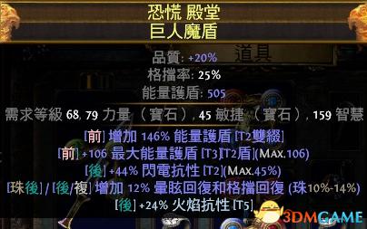 4,盾牌 巨人魔盾(护盾500即可,补抗,有属性更佳,我这个30C)