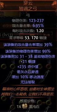 在流放之路BD获取的过程中,虽然有些装备需要非常多的通货才能兑换到,但是,有很多大神开发了一些平民而且伤害很高的套路。这套游侠的龙卷风射击流BD便是集廉价,强度于一身的Build!