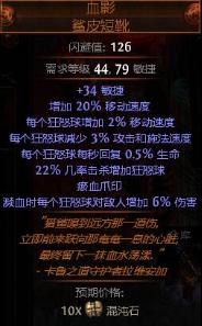 鞋子贵啊。好处自然是暴击得暴击球,还不像血影减攻速,高眩晕。不建议使用,但发出来算一个构思。高移速、高眩晕、暴击时25%几率获得暴击球。天赋不用点暴击球了,暴击本来就够。锦上添花的装备。(如果穿上这个,等于常驻6耐力球、6狂怒球、3暴击球150%暴击率)选择锐眼进阶后刀刀暴击,刀刀击退、刀刀流血、刀刀流血击退伤害爆炸上天。