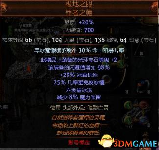 帽子便宜 高闪避 光环宝石+2 25%几率避免被冰缓 不会被冰冻