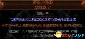 狮眼的陨落:范围内近战和近战武器加成转换成弓类武器加成。才体现了第二张天赋图攻速加成。第四张天赋图弓类攻击暴击时有10%几率获得耐力球。