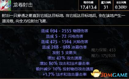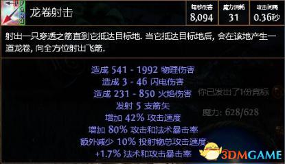 3、二次伤害来源:增加龙卷射击3个额外附属投射物。