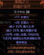 项链便宜,1C足以拿下。补充属性压力,带抗性。减少生命。1.63的物理伤害偷取生命。