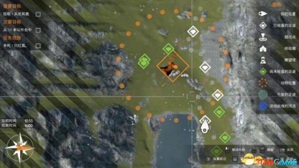 动物位置,动物出现的主要范围,不过如果你曾经惊动过猎物,它们就可能不在这个范围以内;