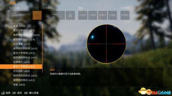 瞄准镜:装备上枪械后,玩家可以挑选枪械上的瞄准镜,但弓箭类武器无需添加瞄准镜(这就意味着它们的射程会很短)。