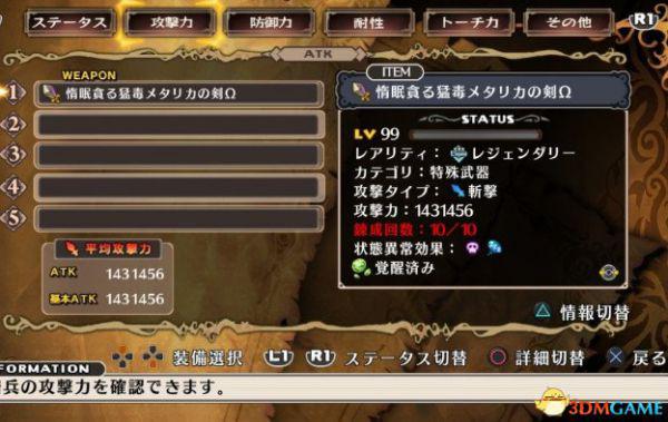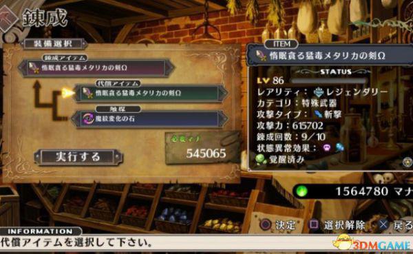 第三步进代償アイテム就发现原本不能被选择的我们打算强化的メタリカの剣可以选择了。选择,然后强化,重复几次,武器就强化爆表了。