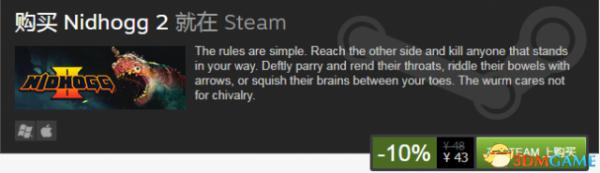 游戏在steam上的售价为48元,现在购买有10%的折扣,为43元。