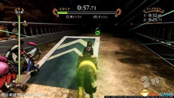 赛马基本操作:R2冲刺(消耗耐力)、方块甩尾(大量消耗耐力)。地上绿点回复耐力、跳台回复耐力(会减速)。