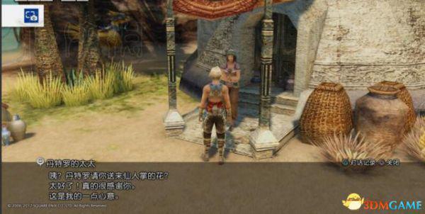 先完成讨伐“随风沙摇摆的仙人掌花”,和委托人丹特罗对话后,前往东达玛斯卡沙漠的涅布拉河沿岸聚落南侧,将仙人掌花交给丹特罗的太太。