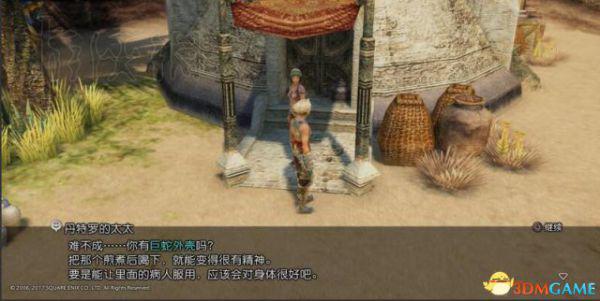 之后再和丹特罗的太太对话,帮她寻找物品治疗病人,其中要在河边找到5个背壳,在丹特罗处找到2个伤药,第三个物品峡谷花露水需要到河对岸去找,所以要去完成“渡船再开”的分支。
