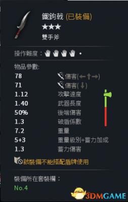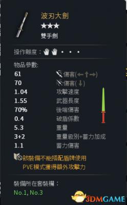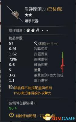有PVE攻击力加成,具有盾刀类武器的全方位格挡功能,攻速快,较长,前端面积大